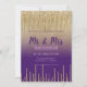 Convite Glitter de ouro roxo usa script MR MRS casamento