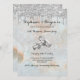 Chic e elegante 25 Silver Casado Aniversário Flat Invitation Card, com anéis de platina colocados em um belo fundo celeste com brilho falso prateado gotejando de cima. Todos os detalhes decorativos da tipografia de fontes são fáceis de personalizar completamente. Uma design moderna e saborosa com um toque de brilho brilhado.