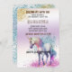 Convite Glitter de Unicórnio Rosa Dourado Aqua