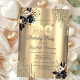 Convite Glitter Dourado Coloca Rosas pretos 100º aniversár