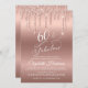 Elegante e chic 60 convite de aniversário virtual com "60 & Fabuloso" em um bonito script de na moda contra um fundo de rosa dourado, com brilho de rosa dourado falso gotejando do topo. Você pode adicionar facilmente os detalhes da festa online.