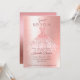 Celebre seu aniversário de marco em estilo com este Convite 16, Glitter Glitter, Rosa moderno Dourado. Apresentando uma ilustração de vestido rosa-ouro brilhante impressionante, colocada contra um fundo rosa-ouro correspondente, este design elegante e moderno é perfeito para uma comemoração Sweet XVI. ✨ Chic, moderno e glam — ideal para a aniversariante que ama brilho! Todo texto é totalmente personalizável, de modo que você pode personalizar cada detalhe — do nome e da data ao local e informações de RSVP — para torná-lo exclusivamente seu. Perfeito para aqueles que querem um convite de destaque que combina o brilho moderno com um toque de magia rosa.