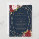 Este glitter de ouro geométrico e o convite de casamento tropical vermelho é perfeito para um casamento rústico. O design de marsala, artístico bordo, apresenta rosas de aquarelas, verdes, cor-de-rosa, burgundy e blush, combinadas com verde, bem arrumadas em torno de quadros de ouro geométricos, num buquê de flores gracioso e radiante