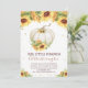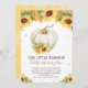 Dourada Brilhante Um Pequeno Pumpkin de Girassol Aniversário Convite Cuta qualquer abóbora etária ou outono o primeiro convite de aniversário para uma menina que apresente uma abóbora branca e alguns arranjos de girassol. Este convite é uma maneira fofa de convidar convidados para um outono, outono, festa de aniversário de menina do templo da abóbora.