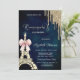 Convite Glitter Drips,Eiffel Tower Bow Navy Blue