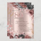 Um convite moderno, chico e glamouroso com pingos de brilho e flores em fundo de ouro rosa.