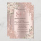 Um convite moderno, chico e glamouroso com pingos de brilho e flores em fundo de ouro rosa.