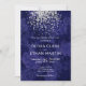 Um convite de casamento elegante e moderno com um esplêndido confete de brilho prateado num rico fundo azul real de rosas. Um design verdadeiramente clássico para o seu dia especial. Você pode personalizar a fonte da maneira que quiser ou adicionar sua própria mensagem especial. Este convite é parte de uma bela suíte de casamento.