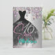 Convite de aniversário prateado iridescente com gotas legal de prata e belas caligrafias monográficas.POR FAVOR, NOTA: Estes são gráficos impressos planos - sem brilho real, joias ou peças levantadas.