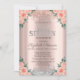 Convite Glitter prateado Rosa Dourado Doce Floral 16