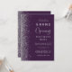 Convide os clientes para a grande abertura de sua empresa com este elegante convite moderno, com uma borda cintilante prateada em um fundo roxo escuro. O texto personalizável combina a escrita manual de cinzas prateadas, fontes copperplate e itálico. O verso apresenta um design de brilho roxo e prateado correspondente.