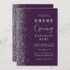 Convite Glitter Prateado Roxo de Grande Abertura da Empres