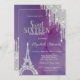 Convite Glitter Prateado Torre Eiffel Violet Sweet 16
