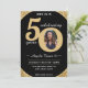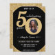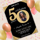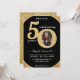 Convite de festas de aniversário feliz de brilho negro e dourado para uma criança de 50 anos. Excelente de design de vidro cintilante para mulheres. Personalize a idade para se adequar à sua ocasião e adicione uma fotografia pessoal do destinatário. Excelente para o 50º aniversário ou festa de aniversário para uma festa de 50º aniversário.