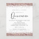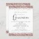 Um valor para o alternativo do ORÇAMENTO em tamanho menor de 4,5 x 5,6" de semirbrilho de 110 lbs, que é de espessura semelhante a um cartão postal (no entanto, não é adequado para uso como cartão postal). POR FAVOR, OBSERVE QUE HÁ UM convite por folha. Convidado de Quinceañera, rosa Dourado Glitter Border. As bordas elegantes de confete de falso Rosa dourado estão no topo e no fundo e também no verso. Quinceañera é feita no estilo moderno da caligrafia. Personalize facilmente o resto do texto para você.