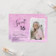 Pintinho moderno Sweet 16 convite de aniversário com fundo brilhante roxo e letra elegante de caligrafia. Carregue sua foto favorita.