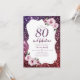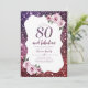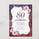 Púrpura brilhante brilha fundo brilhante brilhante e floral cor-de-rosa com script "80 e fabuloso" em convites de festas de aniversários de 80 central, elegante e na moda, excelente marco. Papel de acabamento Semibrilho selecionado.