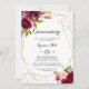 Este convite de Quinceañera, uma simples festa de aniversário, é perfeito para uma luva de ouro geométrica. O design apresenta flores cor-de-água rosa, pinceladas, vermelhas, arrojadas e bordo com folhagem verde, enfeitando uma estrutura geométrica dourada brilhante.