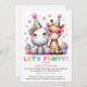 Prepare-se para uma aventura de safari espumante com este convite de aniversário feminino e alegre! ✨ 🌿 apresentando uma charmosa girafa aquática e hipopótamo, adornada com sotaques cor-de-rosa e dourados, chapéus de festas e vibrações safari lúdicas, este design é perfeito para uma celebração na moda e divertida de temas da selva. Quer seja para um primeiro aniversário ou uma fabulosa festa infantil, este convite fantástico e glamouroso vai tornar o seu evento extra especial! 🎈 💖