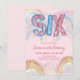 Convite Glitter Sequin Rainbow 6th Birthday Invitation