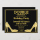 Convite Glittery Sparkly Dourado Stilettos Duplo Aniversár