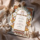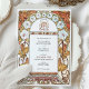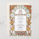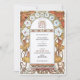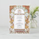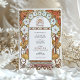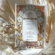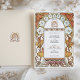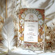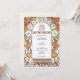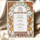 Este requintado convite de casamento em estilo Art Nouveau apresenta um design inspirado no vintage, adornado com intricada arte floral. A borda destaca elegantes flores-da-manhã brancas com centros rosa e lírios laranja entrelaçados com folhas douradas graciosas e acentos ondulantes. A disposição harmoniosa combina tons pastel suaves com tons terrosos e quentes, criando uma atmosfera romântica e atemporal. A moldura floral simétrica realça o espaço central refinado para os detalhes do evento, tornando este design ideal para casais que buscam um tema de casamento elegante e inspirado na natureza. O estilo artístico presta homenagem à estética Art Nouveau do início do século XX, celebrada por suas linhas fluidas e motivos botânicos.