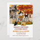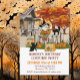 O convite da Festa de Halloween para o Festa de Festas de Fogueira de Queda apresenta um gnomo bonitinho sentado numa cerca com o seu truque ou o saco de doces.