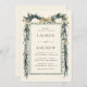 This wedding invitation features a watercolor winter greenery garland adorned with pine branches, holly berries, botanical foliage, gold ribbon bows, and elegant calligraphy. For more advanced customization of this design, please click the BLUE DESIGN TOOL BUTTON above! Matching items are also available.