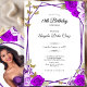 Convite Gold Butterflies Purple Roses 18th Debut Birthday