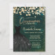 Convite Gold Dots,Black Dress Green Quinceañera