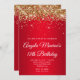 Convite Gold Glitter Bright Red Gradient 18th Birthday