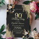 Convite Gold Glitter Drips Black Roses Dark 90th Birthday