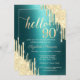 Convite Gold Glitter Drips Green Metallic 90th Birthday