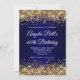Convite Gold Glitter Navy Blue Ombre 60th Birthday