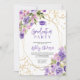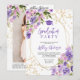 Convite Gold glitter Purple girly floral photo graduation