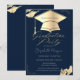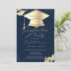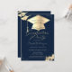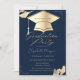 Convite Gold Graduation Cap Frame Gold Brush Stroke Blue