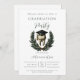 Celebrate your dental school graduate with a refined, emblem-style design featuring a gold metallic tooth, a classic graduation cap, and elegant laurel leaves. The layout is clean and sophisticated, with timeless typography and soft neutral tones that elevate the entire invitation. Perfect for dental grads who appreciate a polished, professional aesthetic with a modern edge. A stylish way to honor their hard-earned achievement.