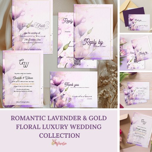 Romantic Lavender & Gold Floral Luxury WeddingCriado por Mypaperlove Designs