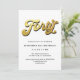 Convite Gold Retro Script Black White 40th Birthday Party