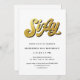 This fun, retro-inspired 60th birthday party invitation features a classic white background with faux gold retro script and simple typography for the invitation text. The script on the front says "Sixty". Customize this design further by adding a photo or additional text to the back simply by using the "design tool".