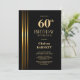 Convite Gold Striped Black 60th Birthday Party