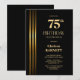 Invite your friends and loved ones to your birthday celebration with this modern gold striped black 75th birthday party invitation. The customizable text area in this invitation template allows you to include all the necessary details for your special birthday celebration, including the date, time, venue, and RSVP information. A variety of paper types and corner styles are available for your unique invitations, along with the option to download if you prefer a digital format.