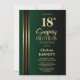 Convite Gold Striped Black Green 18th Surprise Birthday