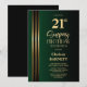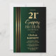 Convite Gold Striped Black Green 21st Surprise Birthday