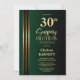 Convite Gold Striped Black Green 30th Surprise Birthday