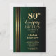 Convite Gold Striped Black Green 80th Surprise Birthday
