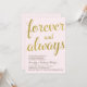 Um convite de aniversário de casamento glamoroso que apresenta a frase "Para Sempre e Sempre" escrita em uma bela caligrafia com aparência de folha de ouro falsa e um fundo rosa claro. O texto pode ser personalizado para se adequar a qualquer aniversário.