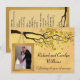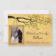 Celebre um aniversário de casamento de cinquenta anos com este adorável convite de modelo de foto. Este design retrata uma árvore com folhas douradas, pombinhos e uma moldura para uma foto do casal comemorativo pendurada nos galhos. O verso do convite tem espaço de sobra para informações de celebração. Design vetorial original de Night Owl's Menagerie, 2015.