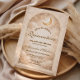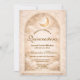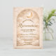 A luminous celestial design featuring delicate crescent moons and scattered constellation stars across a warm parchment background. A refined gold border frames the composition, while elegant script typography creates a graceful focal point worthy of such a meaningful milestone. The soft ivory and champagne tones give the entire piece a timeless, radiant glow. Perfect for a quinceañera celebration that feels romantic, elevated, and touched by starlight.