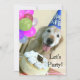 Este convite de festas caracteriza uma fotografia de um cão de sorriso do golden retriever que esteja vestindo um chapéu do aniversário, cercada por balões coloridos e por um bolo. O texto na parte dianteira lê, "deixou-nos Party!" Personalize a parte traseira com todos os detalhes de seu dia grande! Fontes de harmonização do partido disponíveis!
